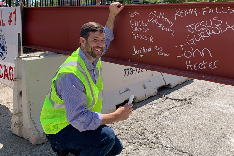 Rob Dean signing the final steel beam at CoreSite's CH2.